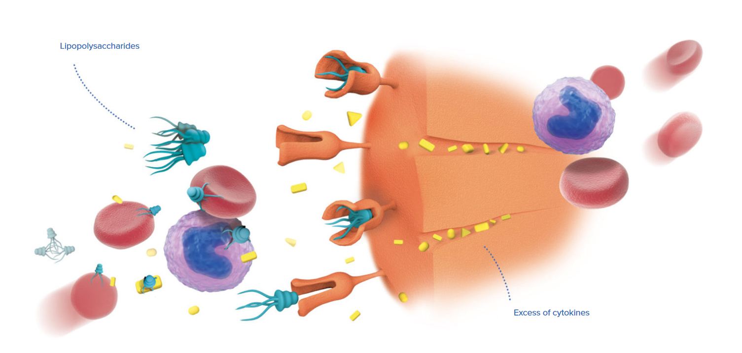 Next-generation extracorporeal blood adsorber, non-pyrogenic, gamma-sterilized, single-use medical device. Selective adsorption of lipopolysaccharides and non-selective adsorption of cytokines, myoglobin, cellular debris, endogenous and exogenous toxic substances.